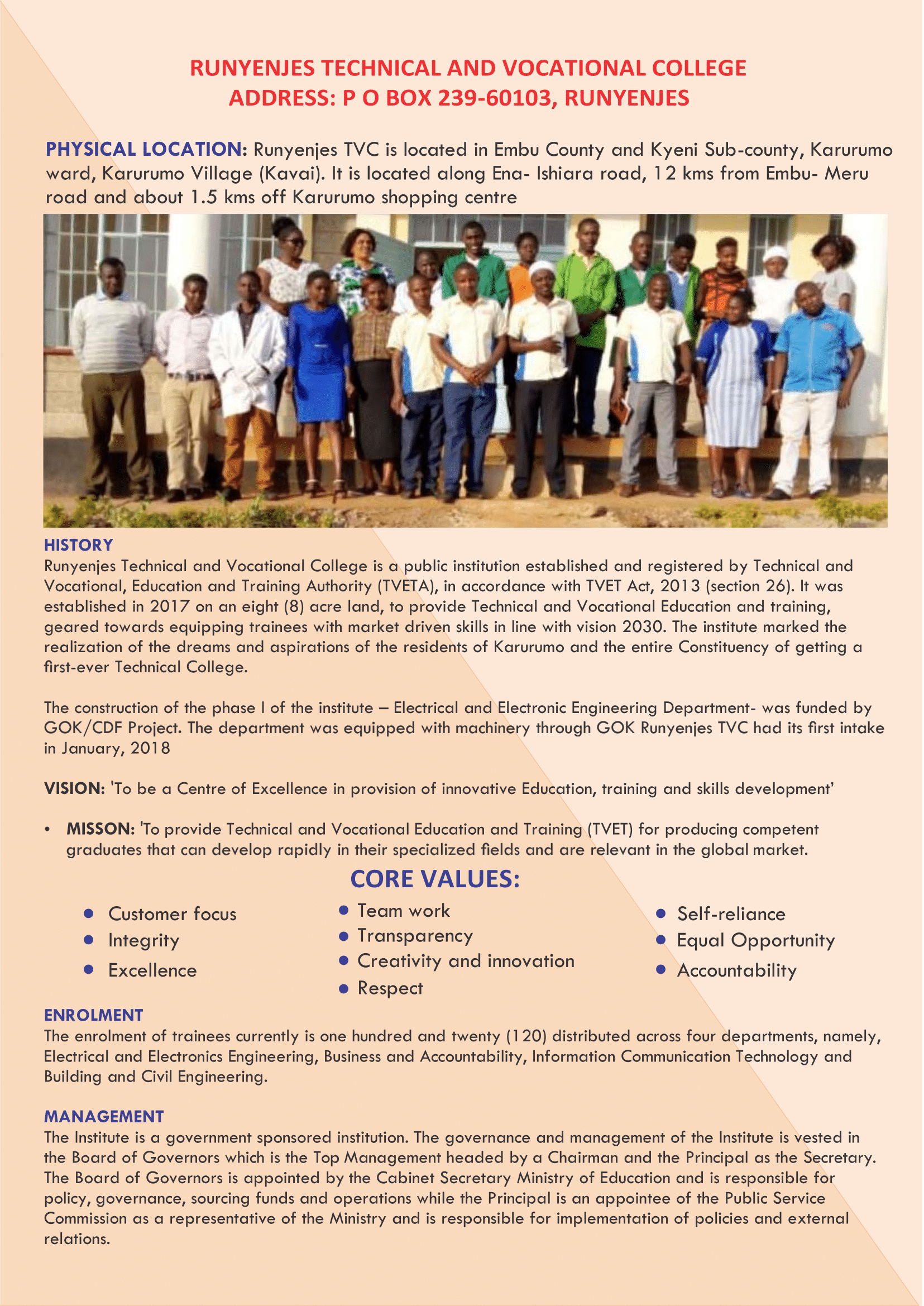 Runyenjes Technical and Vocational College wishes to announce reporting dates as follows: